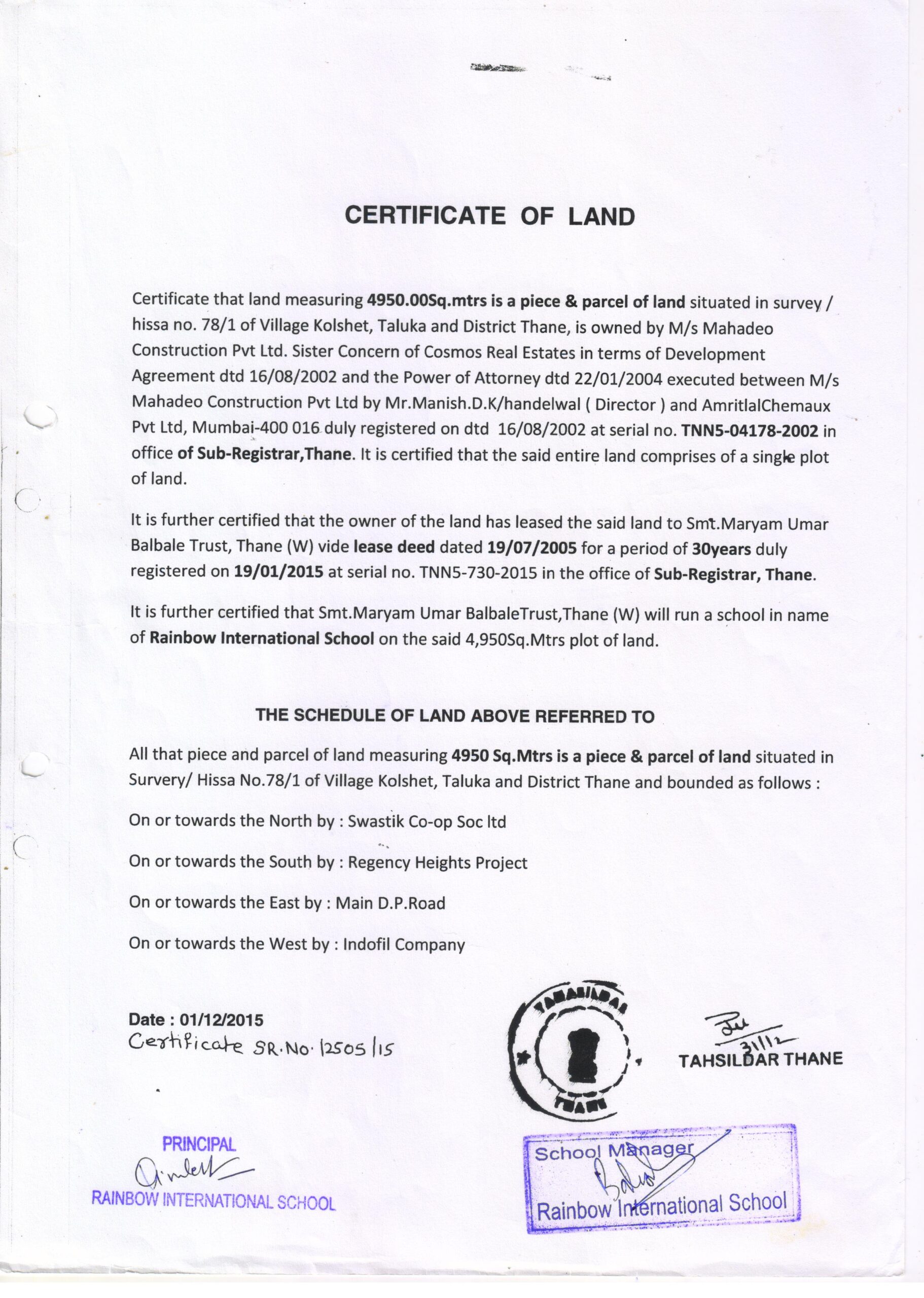 | TOTAL CAMPUS AREA OF THE SCHOOL (IN SQUARE METER) | 4950 sq m |